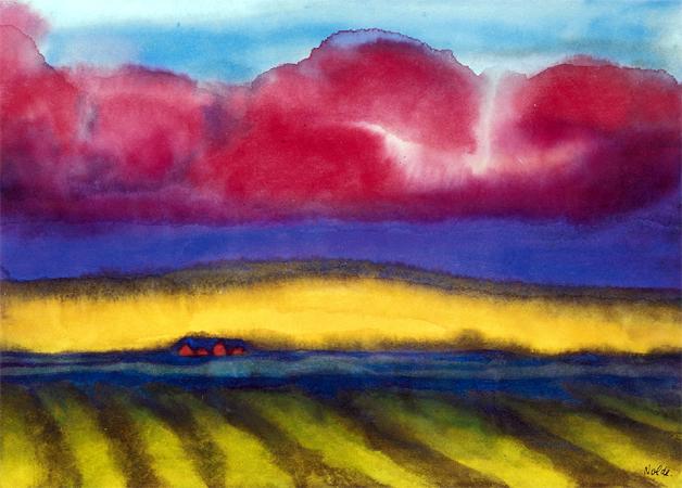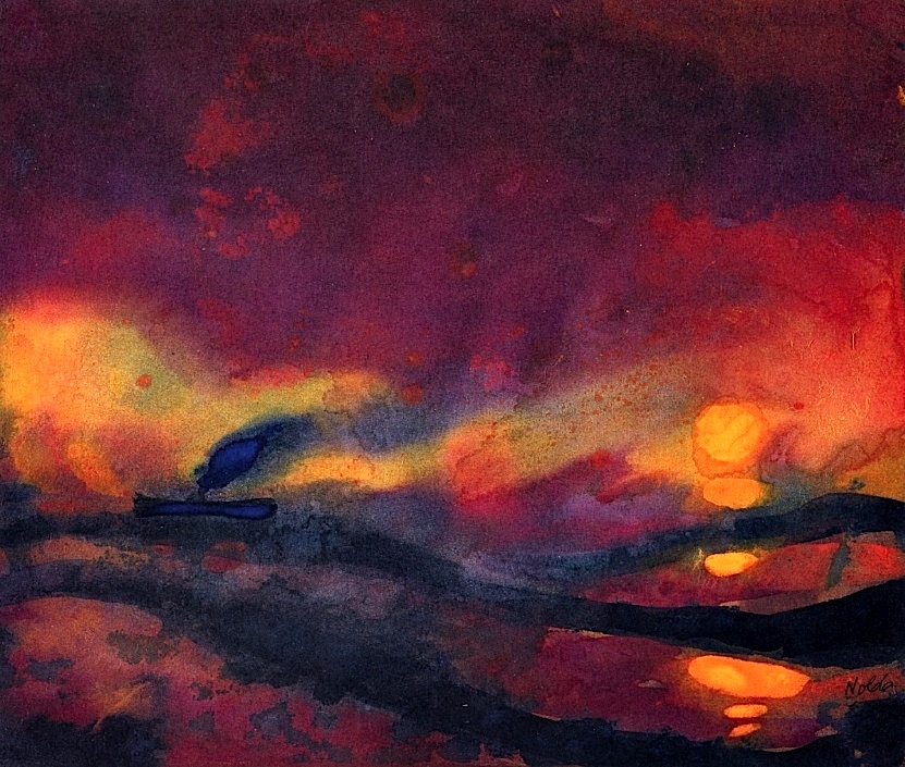 Nel 1926 Nolde conseguì una laurea honoris causa all’università di Kiel, ma pochi anni dopo cominciò ad essere perseguitato dai nazisti, che lo consideravano un artista degenerato: i suoi lavori furono vietati e non gli fu permesso di dipingere, continuò tuttavia a produrre segretamente le sue opere. Riscoperto e rivalutato dopo la seconda guerra mondiale, è oggi considerato uno dei maggiori rappresentanti dell’espressionismo. Morì a Seebüll, nel nord della Germania, il 13 aprile 1956. Semplicemente splendidi i suoi acquarelli.