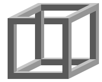 Osservando ad esempio il cubo di Necker (rappresentazione bidimensionale ambigua, siamo nel 1832), notiamo che quella che in un primo momento appare come la faccia frontale del solido tende ad avanzare od arretrare alternativamente; non riusciamo cioè a stabilire quale sia la faccia anteriore del cubo e quale sia quella posteriore. L’effetto è interessante perché ogni parte della figura è ambigua per sé stessa ed il sistema percettivo umano elabora un’interpretazione delle parti tale da rendere l’intera figura congruente. Il cubo di Necker non è un oggetto impossibile in quanto non presenta alcuna incongruenza potendo rappresentare perfettamente un cubo reale. Derivata invece dal cubo di Necker, è una rappresentazione paradossale: il cubo impossibile, l’immagine è inconguente ed il sistema percettivo oscilla da un estremo all’altro per trovare una rappresentazione congrua impossibile (riuscite a vederla?).