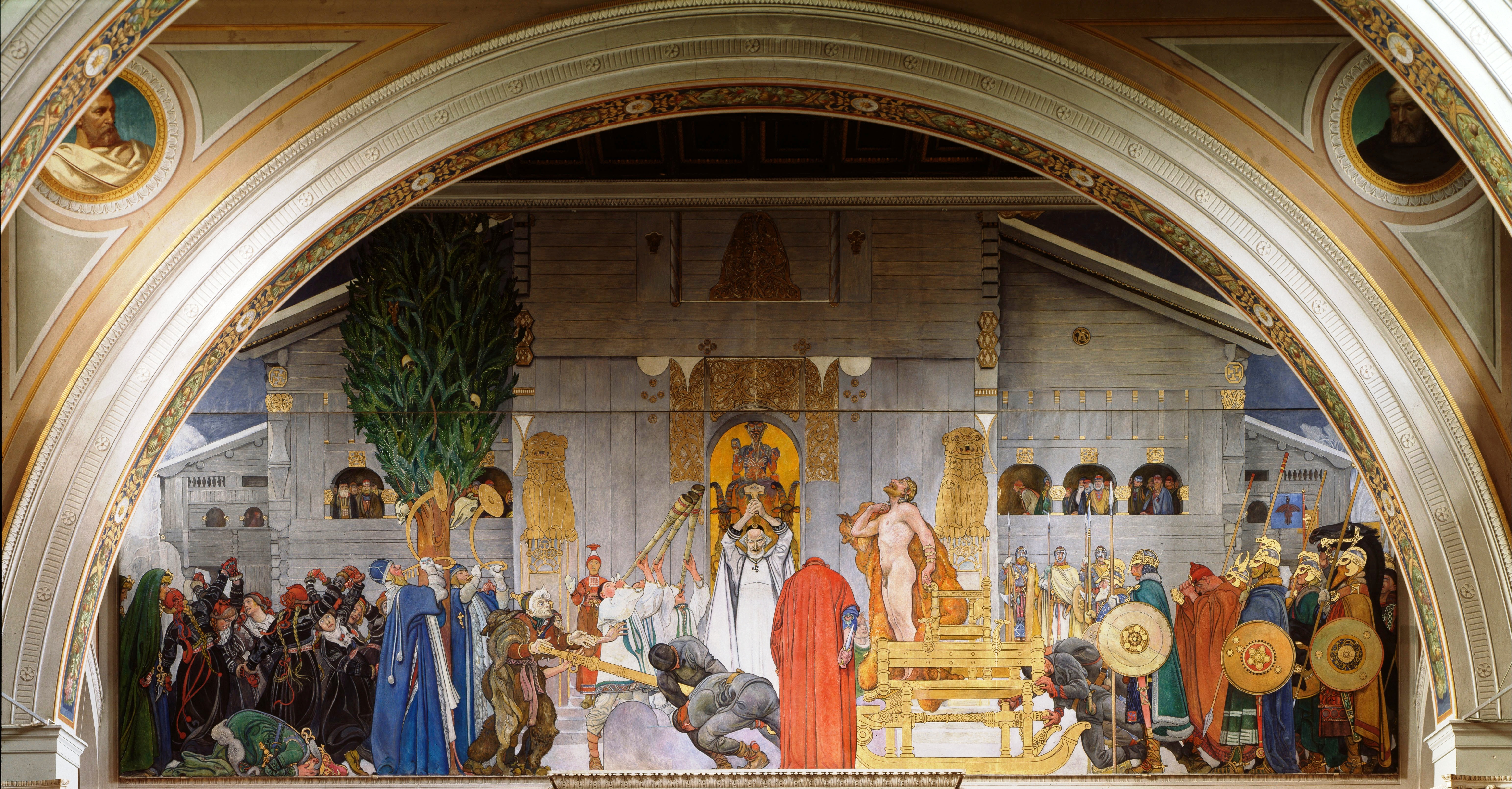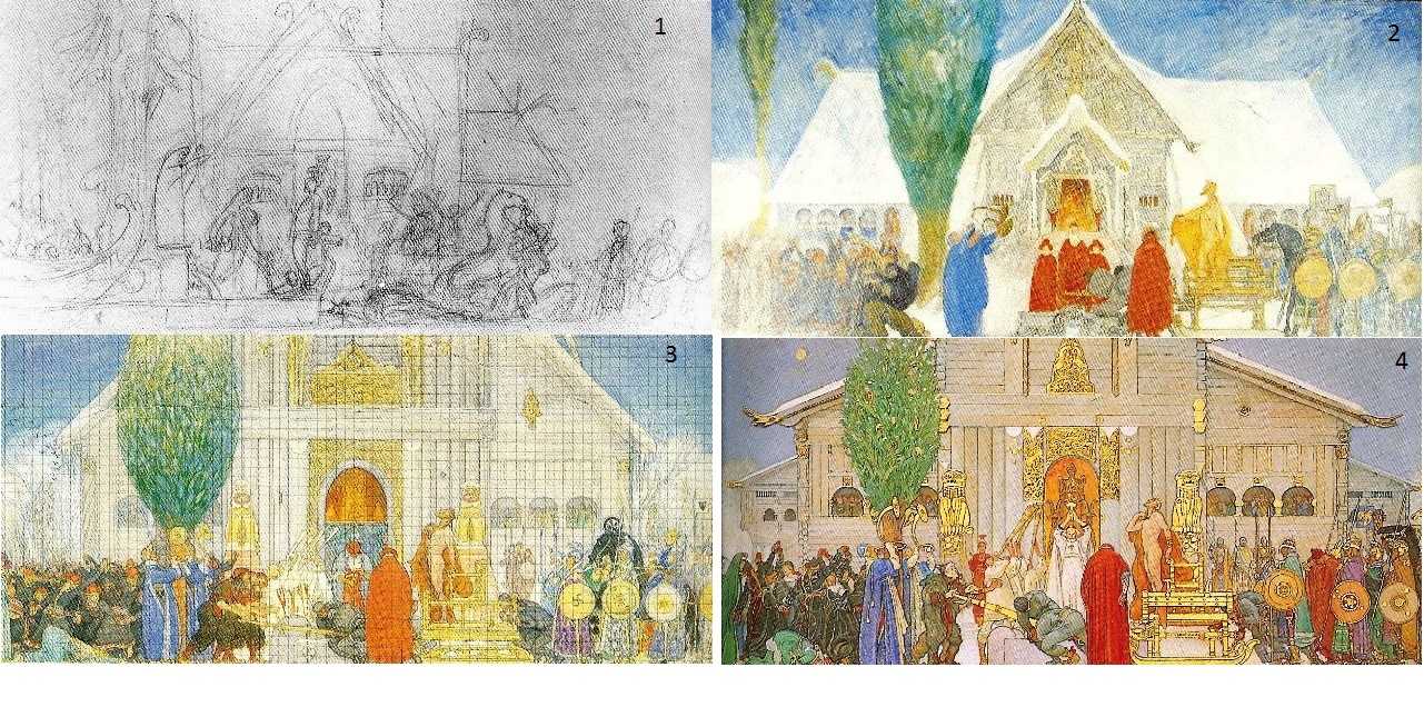 Come spesso accade i suoi lavori non furono apprezzati dai critici d’arte del suo periodo, ma si sa il tempo è giudice e fu così che la sua opera più prestigiosa, costata all’artista innumerevoli fatiche, intitolata Midvinterblot realizzata nel 1915 e commissionata per una parete del Museo Nazionale di Belle Arti di Stoccolma, dopo essere stata rifiutata dalla direzione del museo, fu acquisita e collocata esattamente nel posto che Larsson stesso indicò, in un giorno del 1997.
