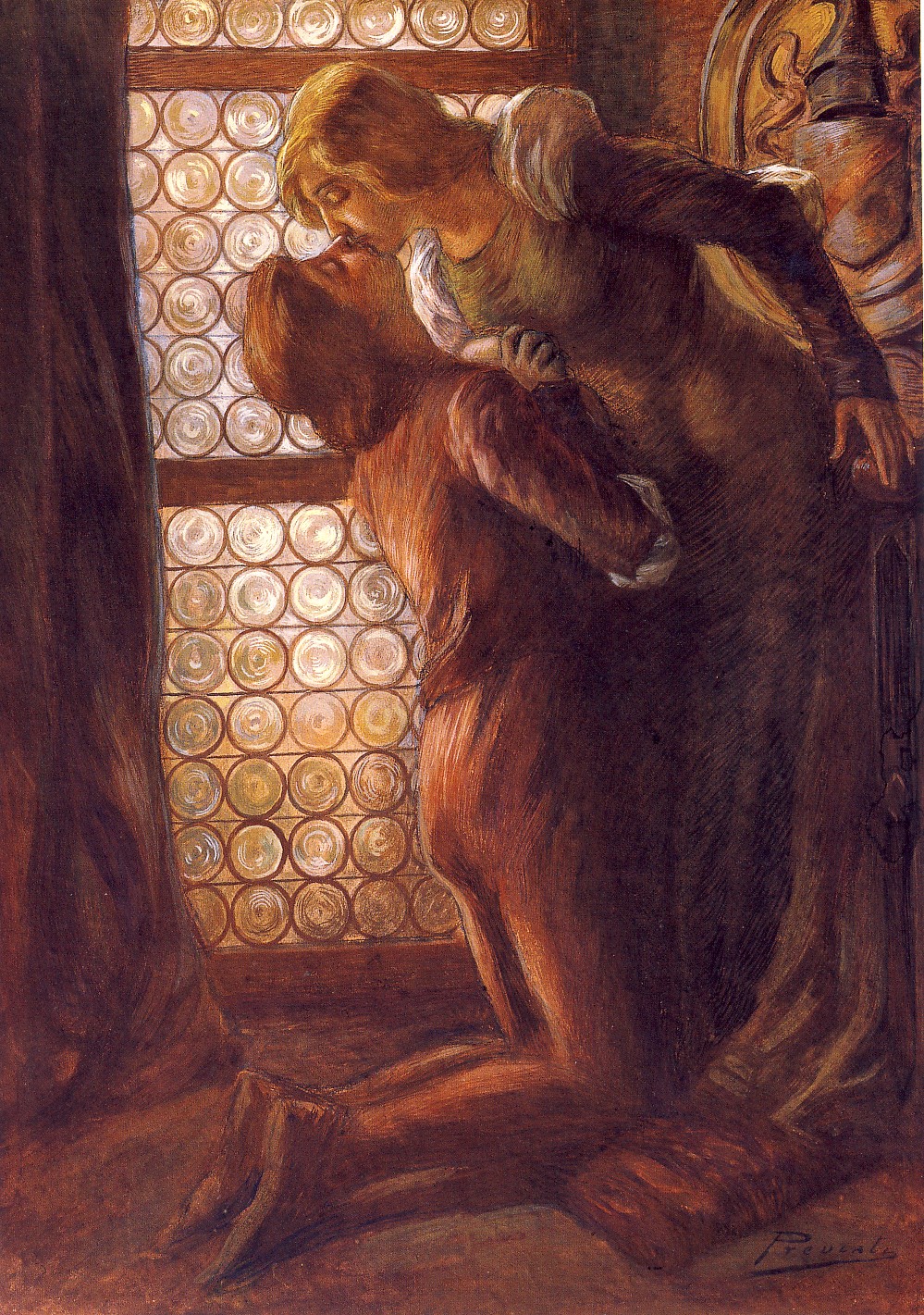 Di Gaetano Previati è questo splendido dipinto “Il bacio” realizzato, tra il 1920 e 1925 in tempera.