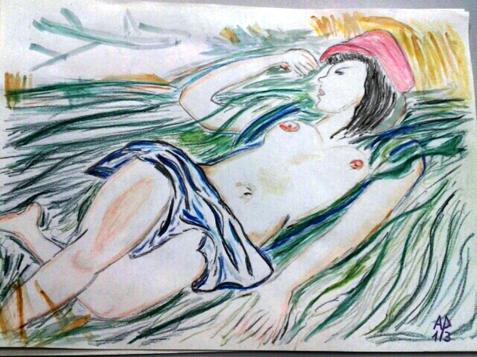 Sleeping girl – omaggio a Andre Planson – matite acquarellabili su foglio